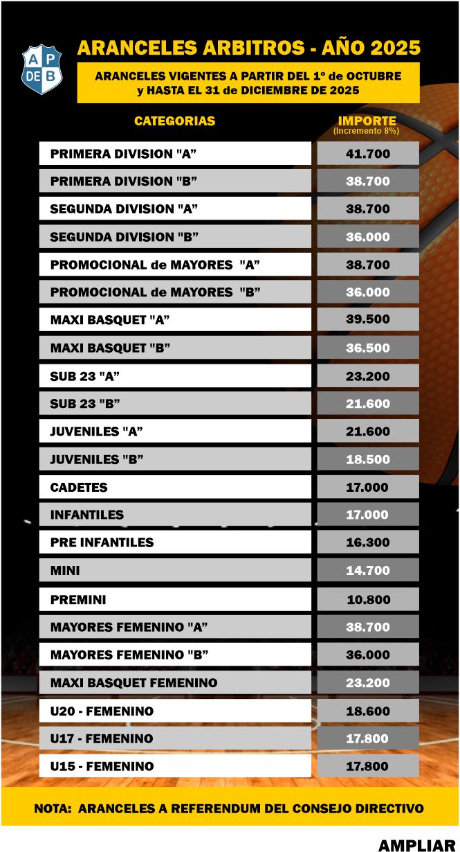 ARANCELES ARBITROS - OCTUBRE 2025 |