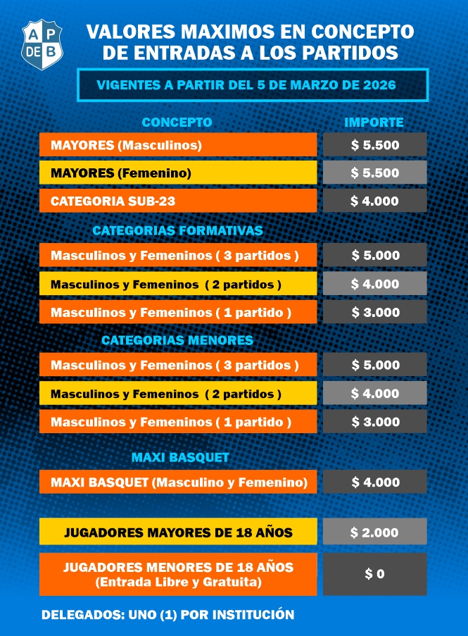 VALORES MAXIMOS EN CONCEPTO DE ENTRADAS A LOS PARTIDOS |
