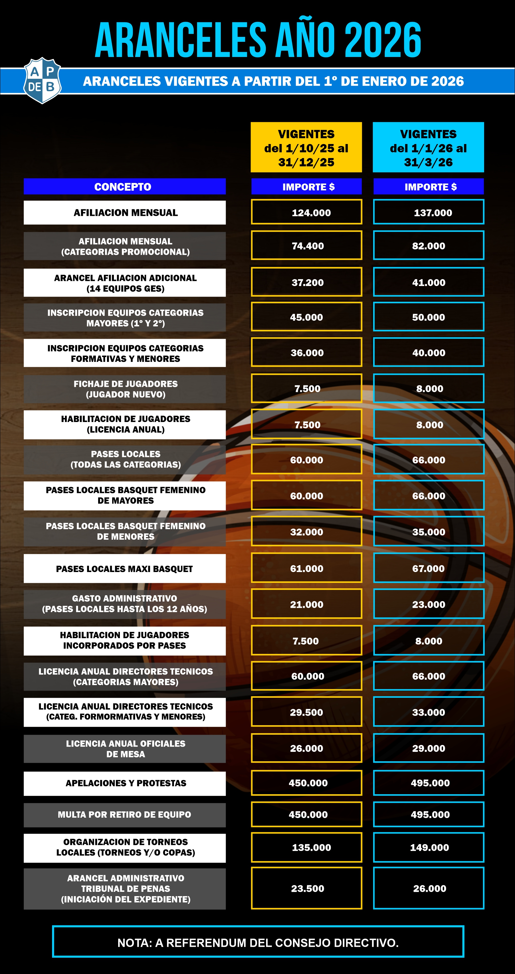 RECORDATORIO - NOTA CAB N° 327/2025 - ARANCELES CAB 2026 |