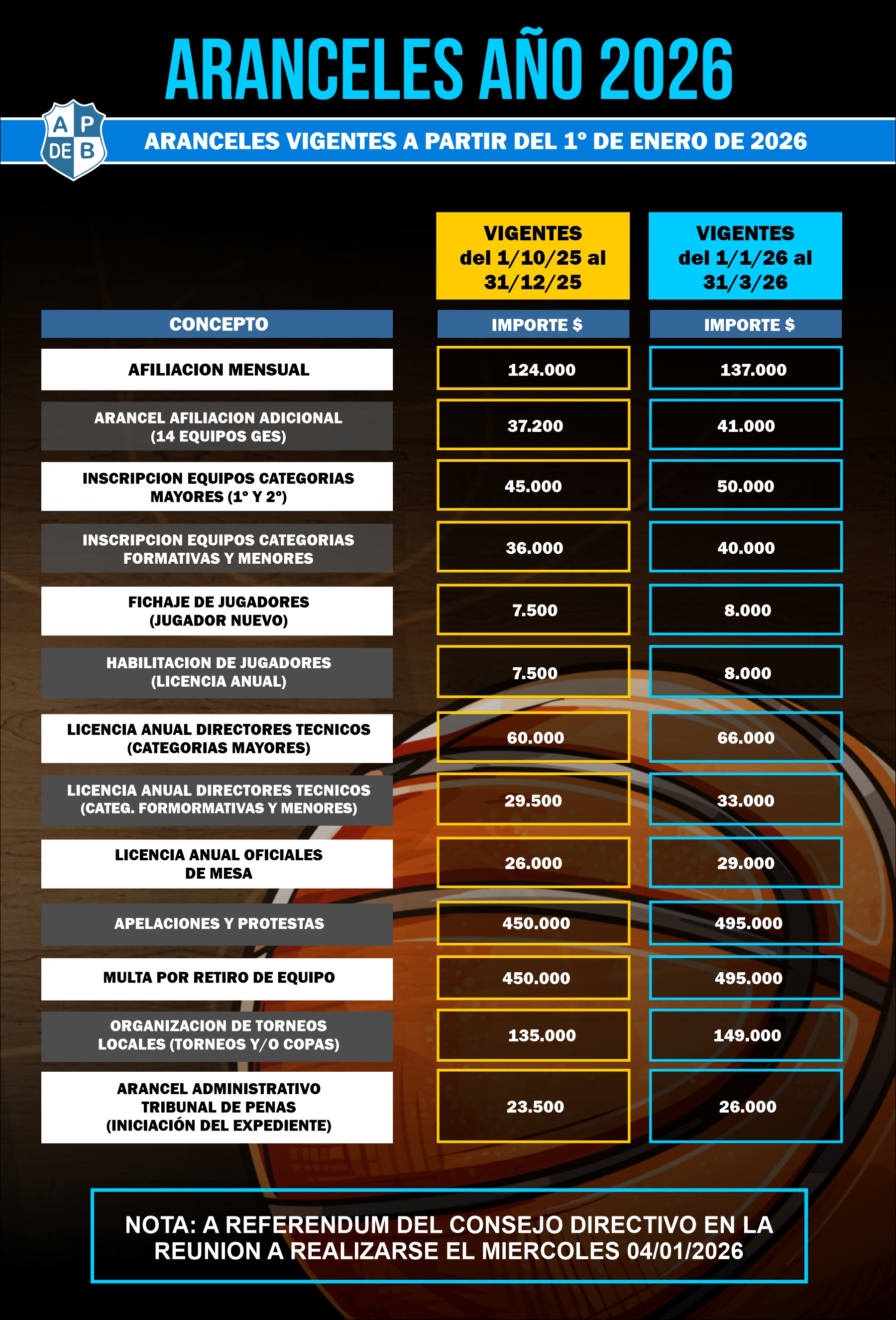 ARANCELES VIGENTES A PARTIR DEL 1º DE ENERO DE 2026 |