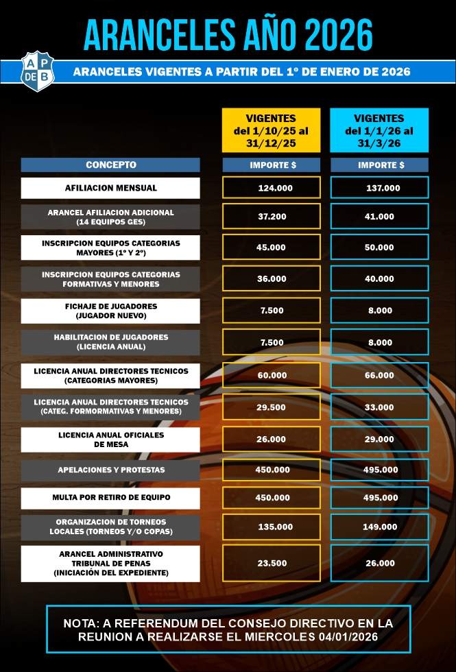 INFORMACION SOBRE LAS COMPETENCIAS ORGANIZADAS POR LA FEDERACION BONAERENSE DE BASQUET 2026