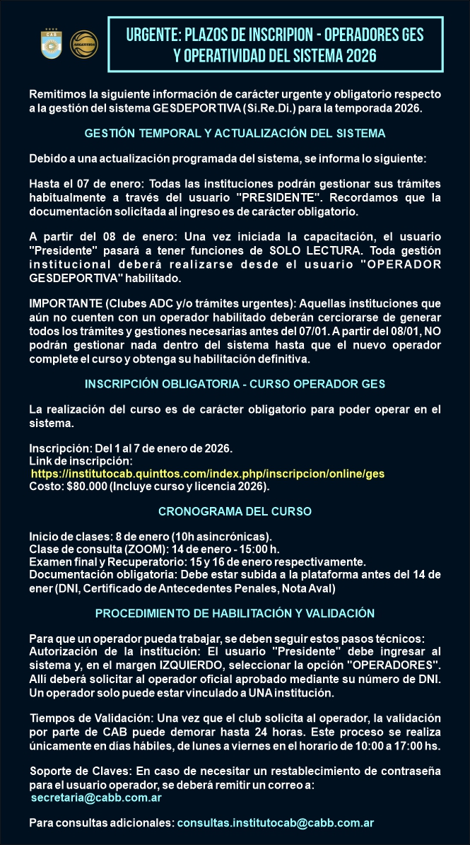 URGENTE: PLAZOS DE INSCRIPION - OPERADORES GES Y OPERATIVIDAD DEL SISTEMA 2026 |