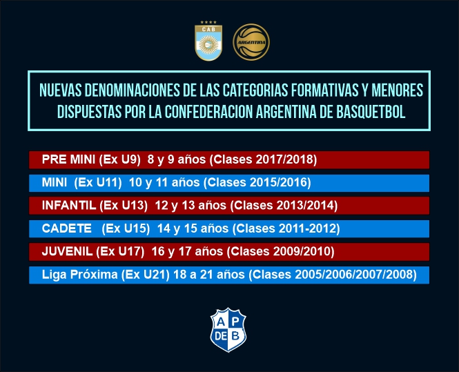 NUEVAS DENOMINACIONES DE LAS CATEGORIAS FORMATIVAS y MENORES DISPUESTAS POR LA CONFEDERACION ARGENTINA DE BASQUETBOL |