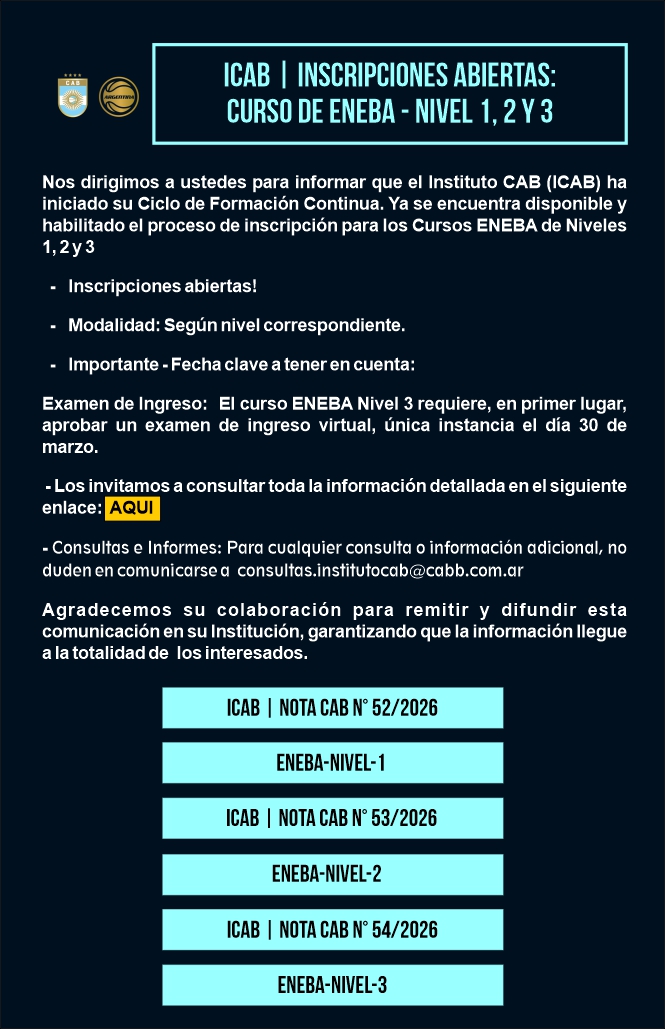 ICAB | INSCRIPCIONES ABIERTAS: CURSO DE ENEBA - NIVEL 1, 2 Y 3 |