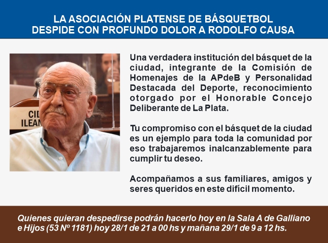 LA ASOCIACIÓN PLATENSE DE BÁSQUETBOL DESPIDE CON PROFUNDO DOLOR A RODOLFO CAUSA |